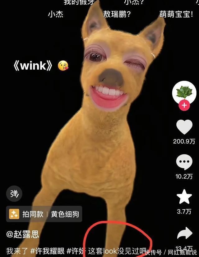 关键赵露思作为一个女明星亲自下场内涵李一桐也是让人没想到了。还特意在自己的抖音发视频玩抽象,把自己的五官放在一个狗脸里。 文案更是直接说到“这套look没见过吧”。