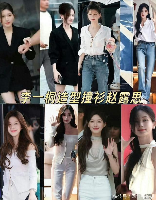 人家李一桐重复的款式都是基础款大众风格,但是来看看赵露思和徐睿知的重复程度。这种花花绿绿的肩膀带朵大花的造型普通人不会穿吧。